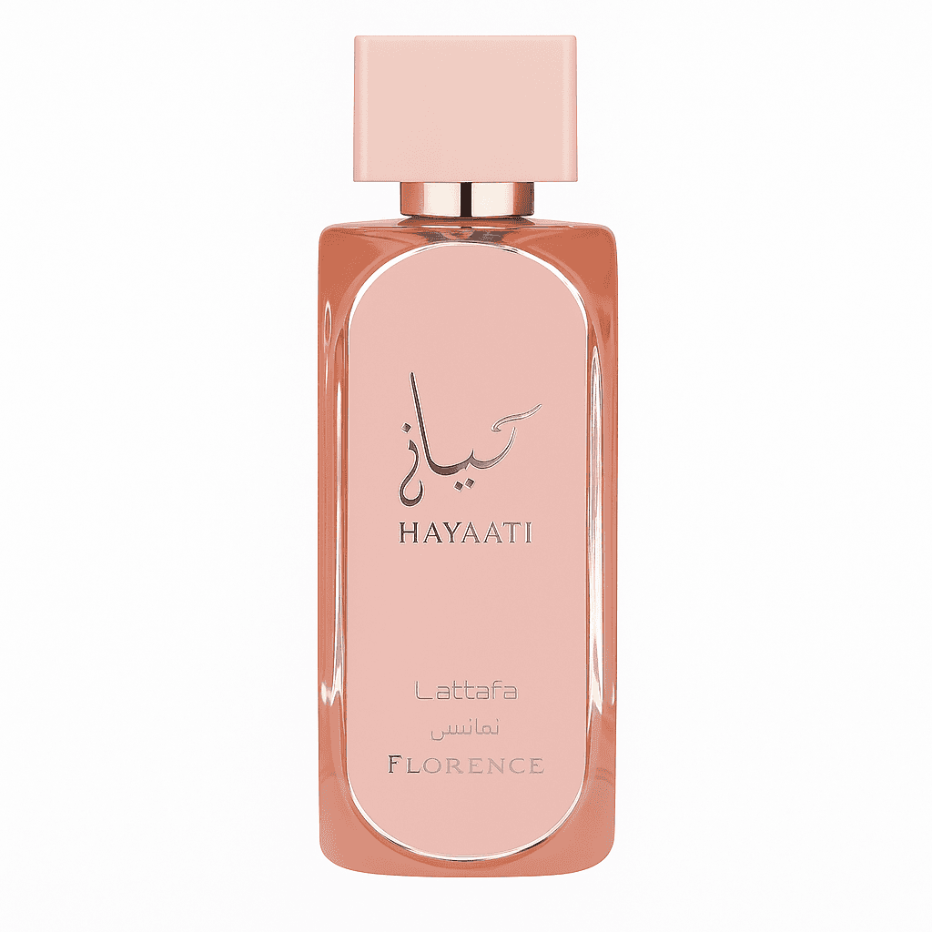 Hayaati Florence de Lattafa Perfumes es una fragancia de la familia olfativa Floral Frutal Gourmand para Mujeres. Hayaati Florence se lanzó en 2023. La fragrancia contiene notas dulces, notas florales, cítricos, toronja (pomelo) rosada y almizcle.